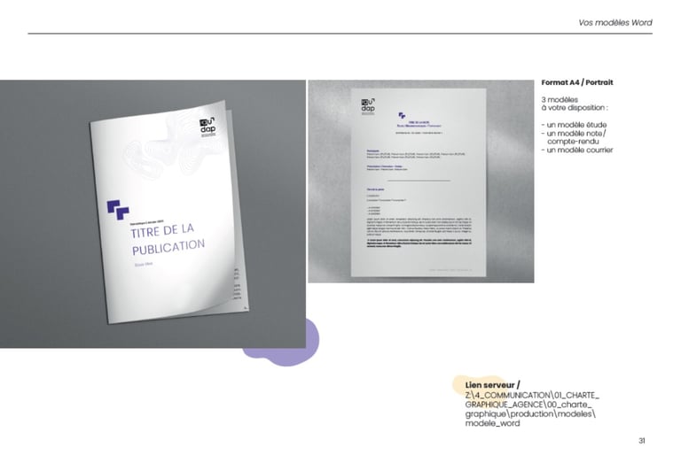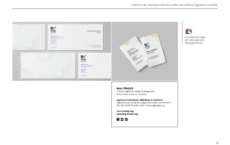 Je suis actuellement salariée dans l'entreprise AUDAP, agence d'urbanisme Atlantique et Pyrénées. J'ai eu le privilège de refaire toute leur identité graphique du logo, à la charte graphique ainsi qu'au site web. Nous avons décidé de créer une charte graphique éthique et éco-responsable pour cela j'ai utilisé très peu d'aplats, une typographie peu gourmande en encre et une mise en page épuré pour nos livrables. Retrouvez ci-joint le lien vers le site web : https://www.audap.org/